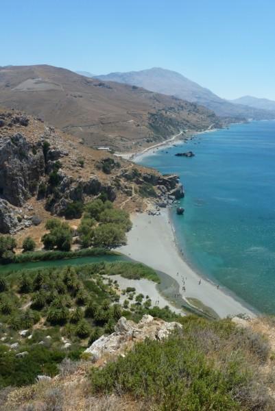 Pláž Vai, za kterou se rozprostírá přírodní datlový háj.