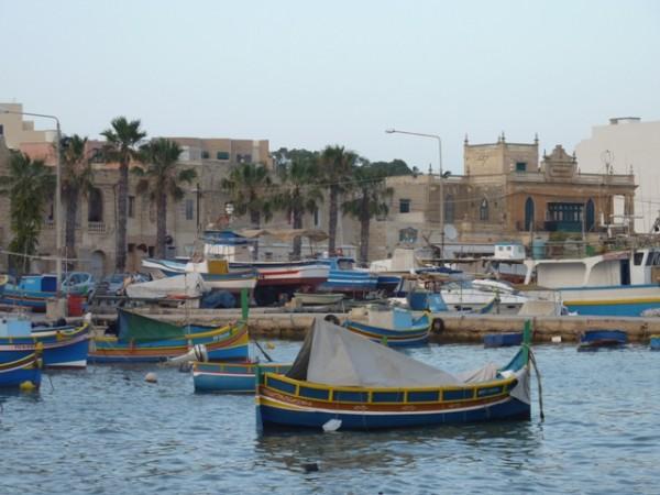 Luzzu - typické maltské loďky v Marsaxlokku.