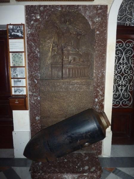 Kopule rotundy v Mostě, kudy prolétla v roce 1942 bomba.
